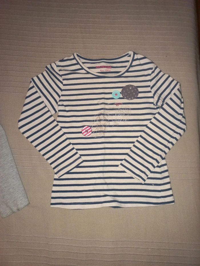 Lot 2 pulls fins toute saison fille, 3 a 4 ans, marinière et gris chiné - photo numéro 4