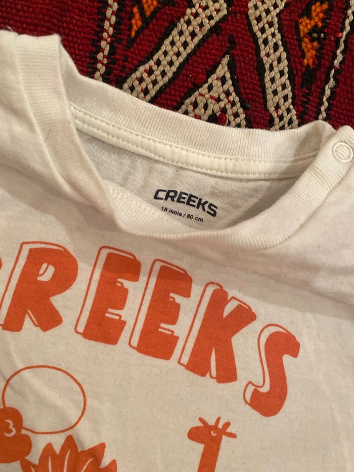 T-shirt blanc rouge Léo girafe lion 18 mois coton Creeks #tshirtmixte #tshirtbebefille #tshirtbebegarcon #creeks #ideecadeau #tshirt18mois #tshirt12mois