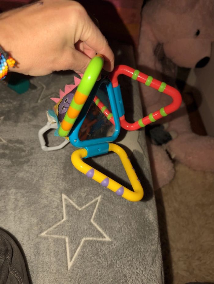 Super suspente animaux Les triangles se rabaissent en faisant un bruit rigolo, plein de couleurs et de formes et solide ! Idée cadeau Occasion mais très bon état et super pour les petits (ma fille de 3 ans veut le garder !) Thème éléphant chat lion et un miroir pour d'admirer et se découvrir 😆 #jeuxeducatifs #jeuxbébés #jeuxbasage #suspente #jeuxlitbebe #animaux #idéecadeau #bébé #bébéfille #bebegarcon #bebe12mois #bebe9mois #bebe18mois #bebe24mois