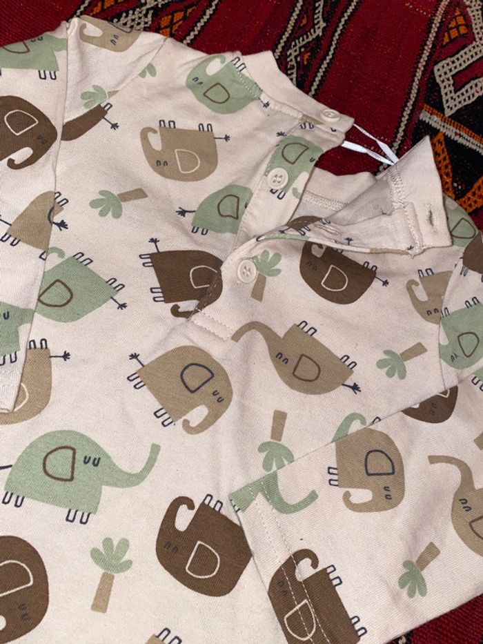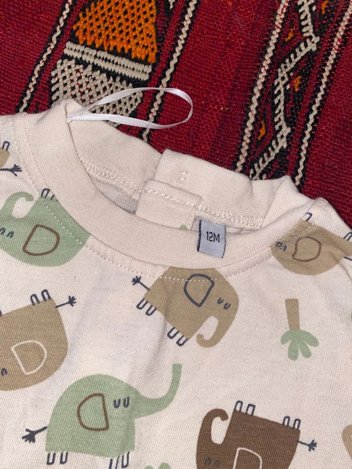 T-shirt léger neuf elephants écru vert marron 12 mois - photo numéro 4