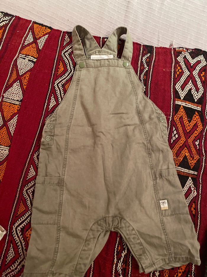 Belle salopette 36 mois mixte kaki coton et lin - photo numéro 1