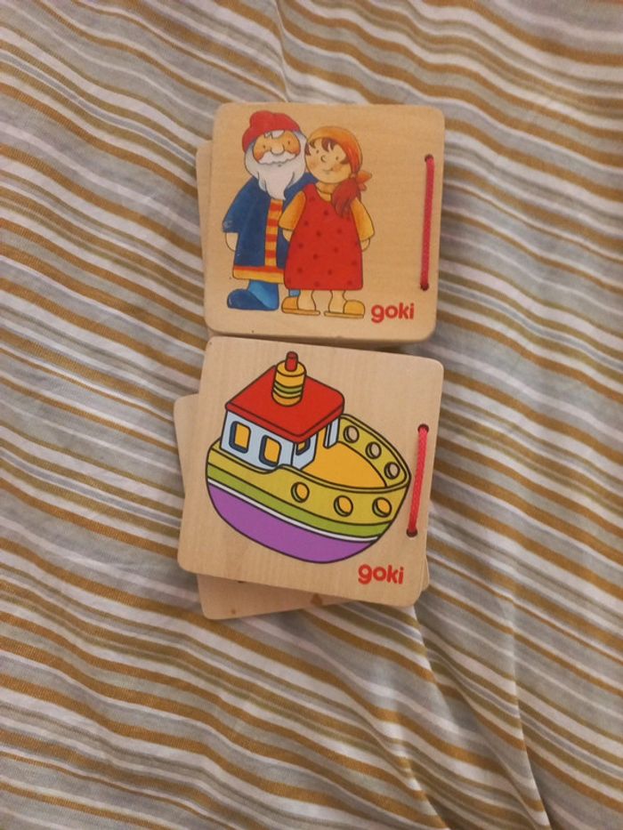 Lot 2 Livres en bois Goki bébé éveil, theme transports et animaux - photo numéro 1