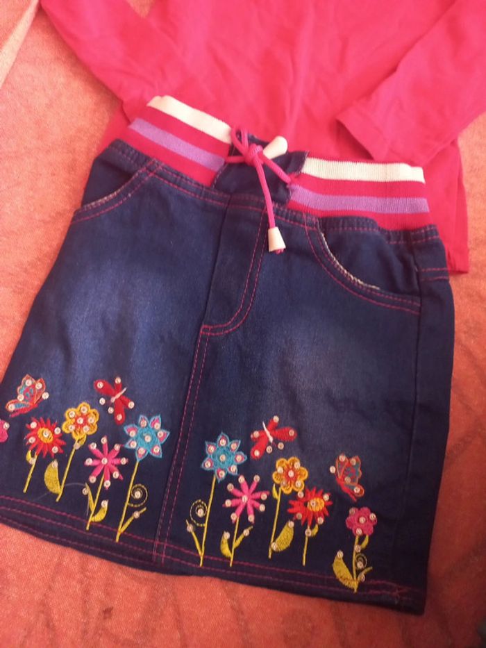 Ensemble jupe fleurie neuve Tshirt long 36 mois - photo numéro 2
