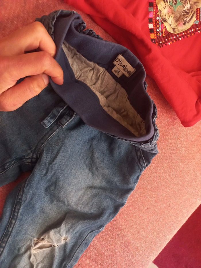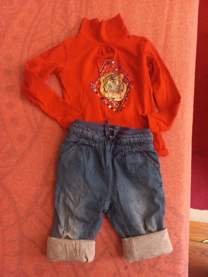 Un jean jegging Kimbaloo bon état Ajustable car élastique a la taille Intérieur jogging tout doux sur bébé Dès 12 a 30 mois dans l'idéal Portable retroussé, en short, idéal soir été ou mi saison 95% coton #bébéfille #bebe #fille #bebe18mois #bebe24mois #ensembleete18mois #ensemblefille24mois #jegging24moisfille #jegging36mois #pantalon24moisfille #pantalon36mois bébéfille24mois #bébéfille36mois #jegging24moisfille #jegging36mois #jegging18mois #tshirtmancheslongues24mois #tshirtmancheslongues36mois #tigre Un pull t-shirt Tissaia 3 ans, dès 18 mois Manches longues theme tigre, col montant, protege des courants d'air Très beau rouge, motif et excellent état