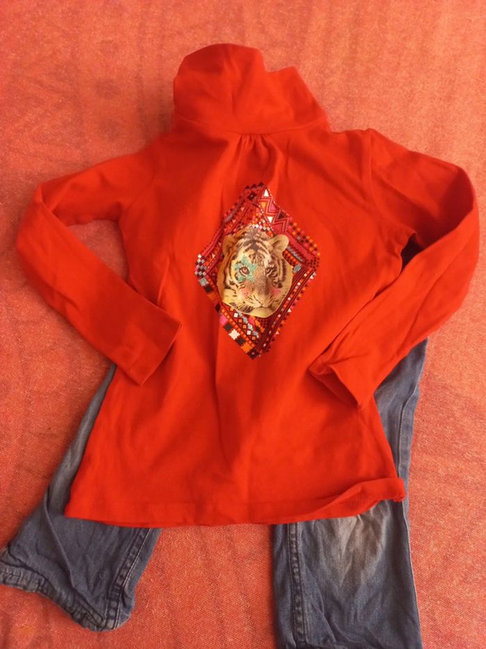 Bel ensemble 24-36 mois fille, jegging + t-shirt rouge avec tigre, coton cotiny - photo numéro 3