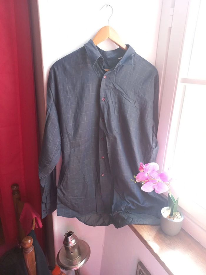 Très belle chemise fine marine reflets légers pétrole a fines rayures L - photo numéro 5