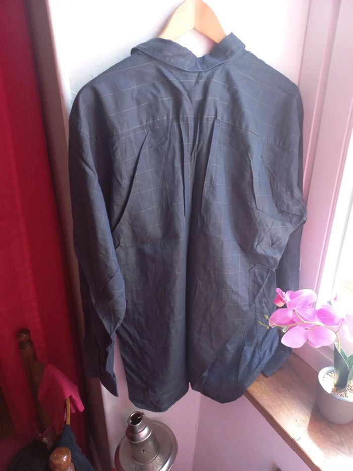 Très belle chemise fine marine reflets légers pétrole a fines rayures L - photo numéro 6