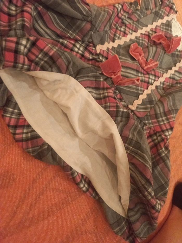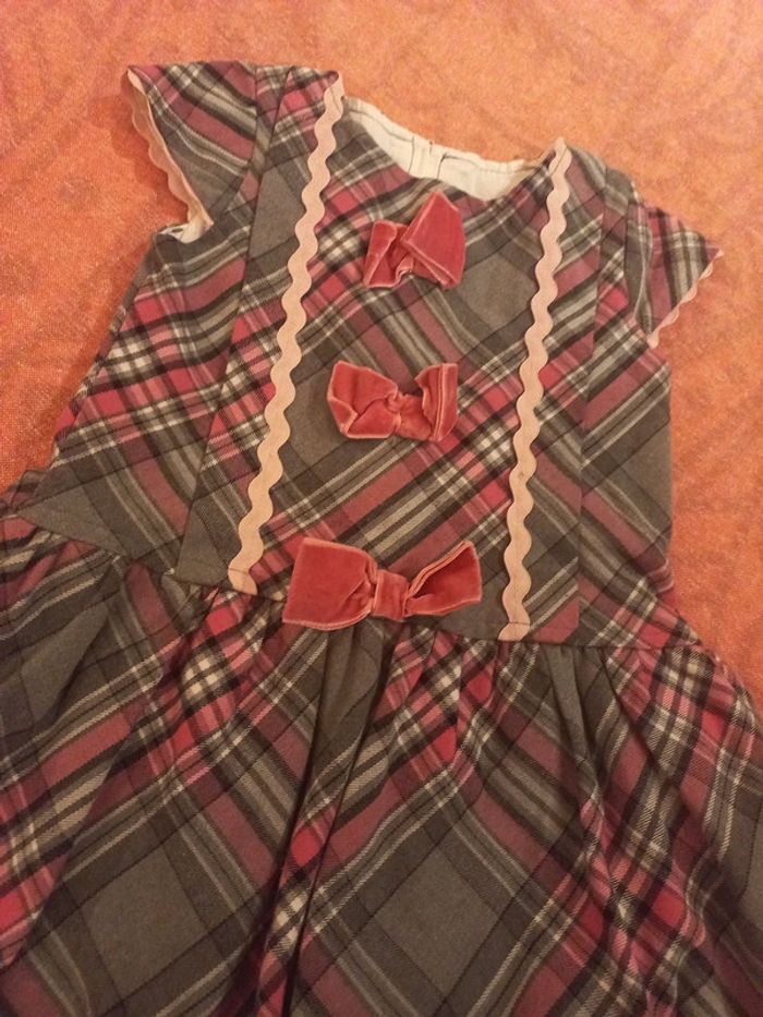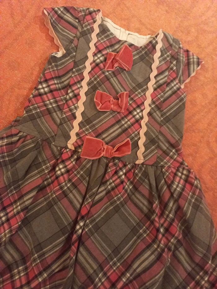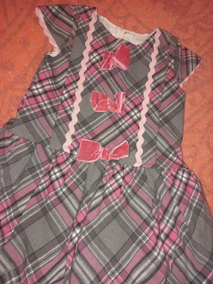 Belle robe pour événement 4 ans, doublée, type écossais a noeuds rose velours - photo numéro 2
