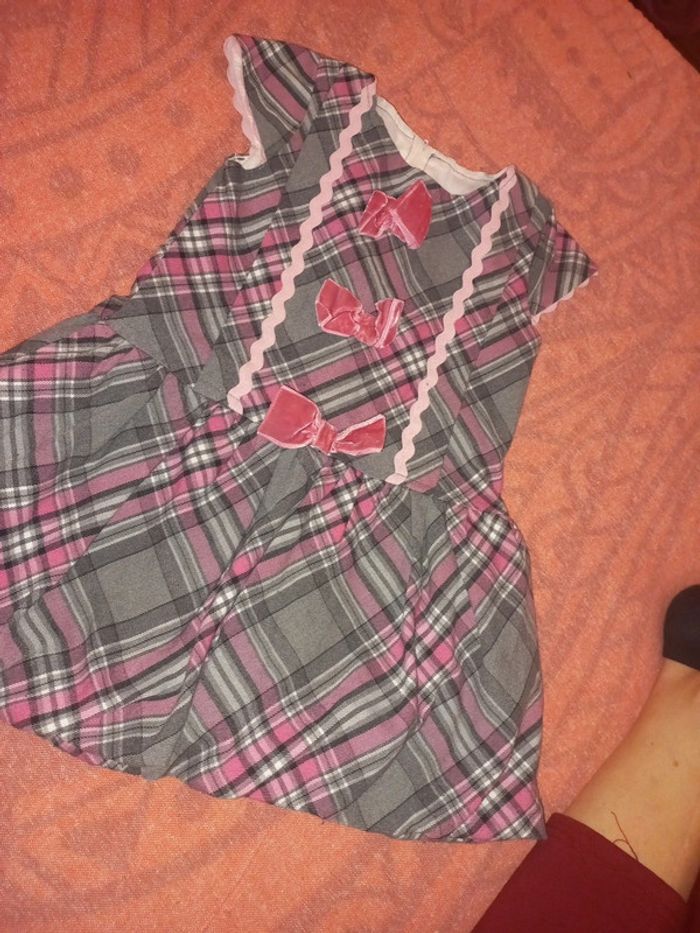 Belle robe pour événement 4 ans, doublée, type écossais a noeuds rose velours - photo numéro 1