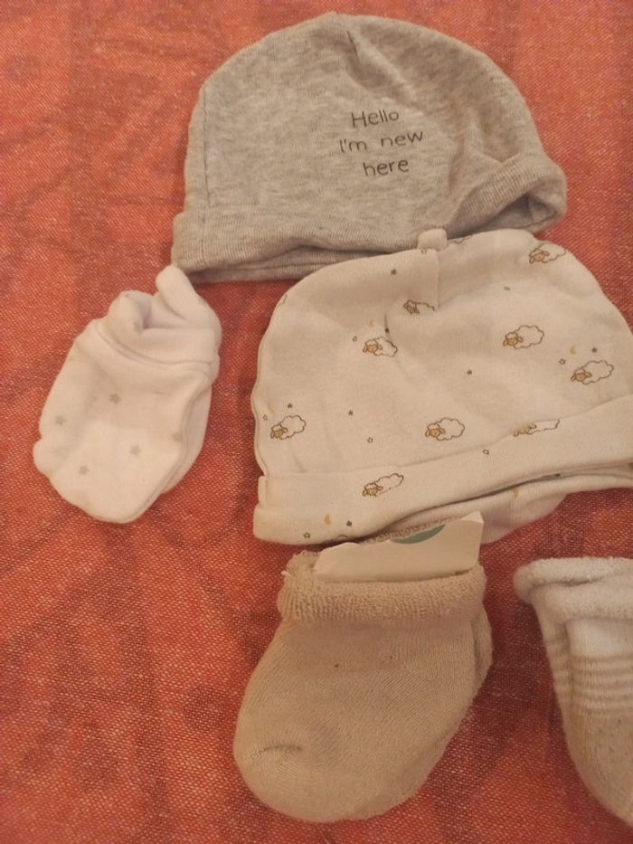 Lot 8 pièces naissance bonnets chaussettes gants coton - photo numéro 3
