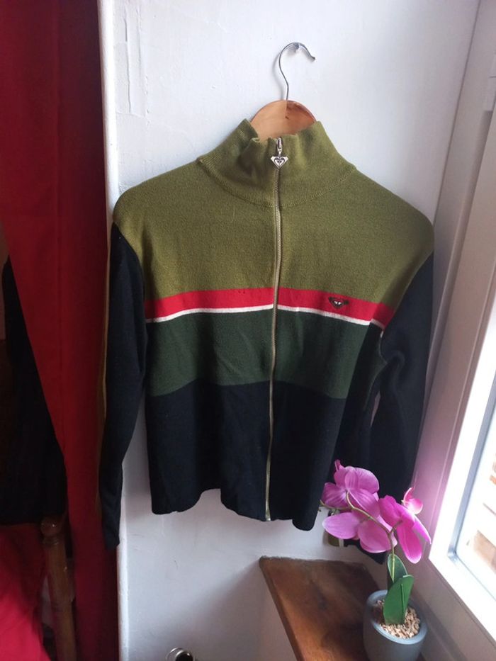 Beau gilet Taille 40 Laine acrylique Quicksilver kaki rouge noir vert rétro - photo numéro 3