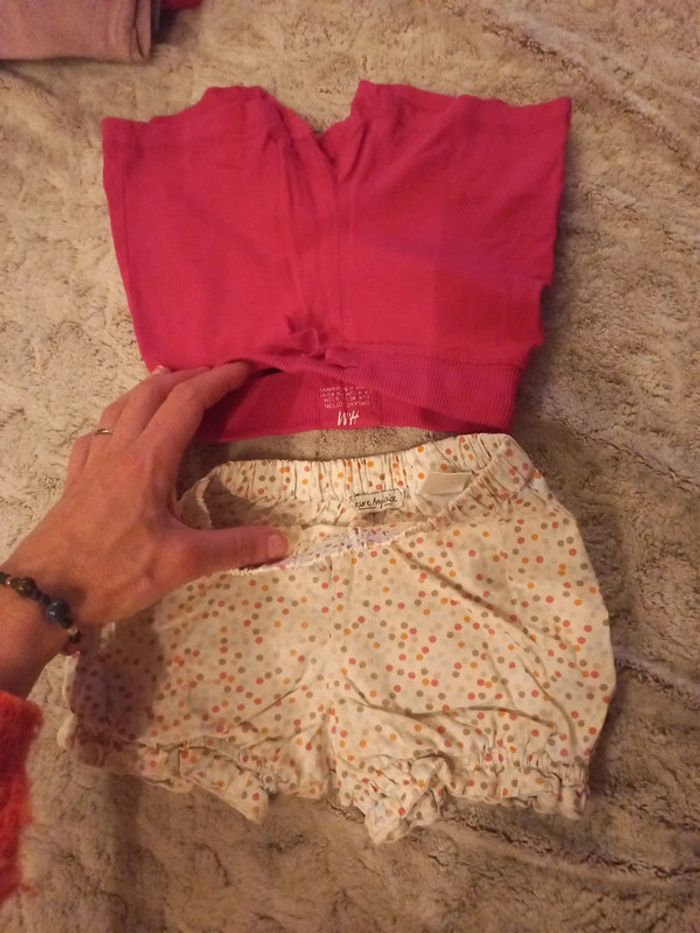 Rose H&M 9 mois a 12 mois rose fushia avec lacet a la taille pour ajuster Un a pois multicolore marque Heure Anglaise 74 cm Les deux taillent bien mais sont aussi extensibles donc #bebefille9mois #bébéfille #bebefille12mois #shortbebefille #shortbébé9mois #short9moisfille