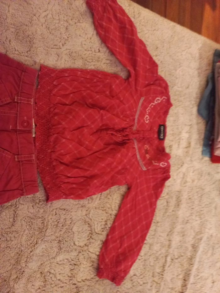 1 blouse Creeks, jolie pratique et légère 1 Pantacourt rouge solide et léger Top car coupe vents mais protègent du soleil, non salissants et sèchent vite #bebe #bébéfille #bebefille18mois #bébéfille #bébéfille24mois #bébé #bébéfille #ensemble #pantalonbebe #pantalon18mois #bebefille18mois #tshirtbebe18mois #blouseété #blouse#debardeurbebefille #blouseete #été #ete18moisfille #blousebebefille