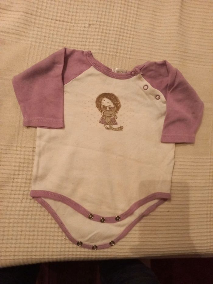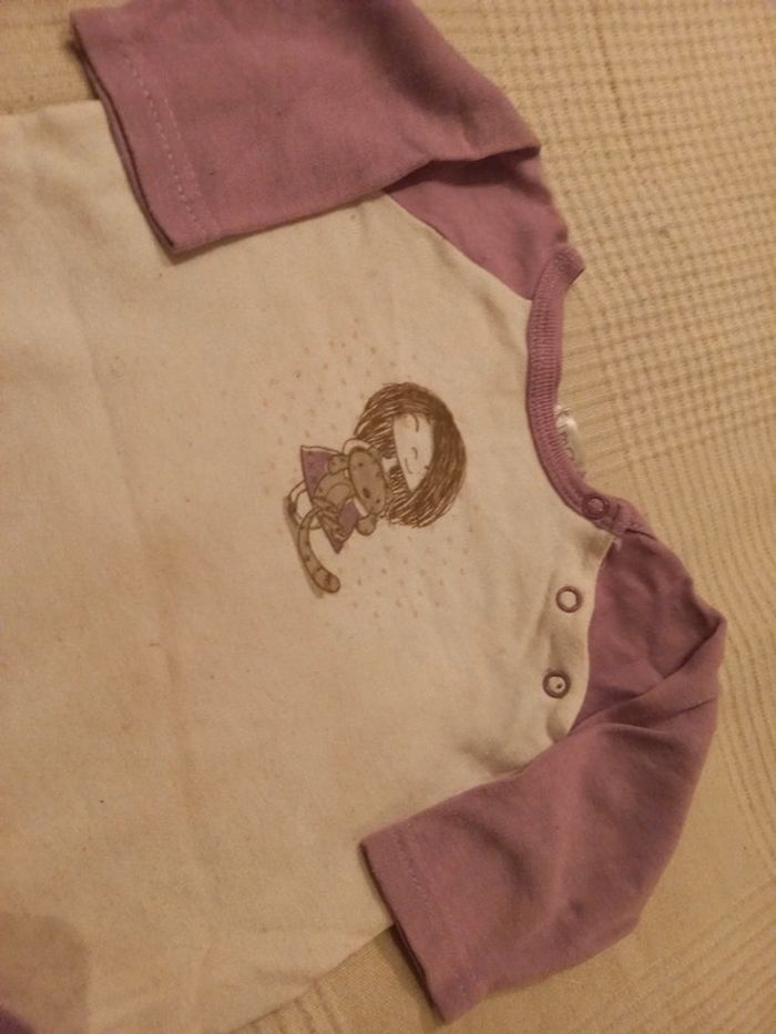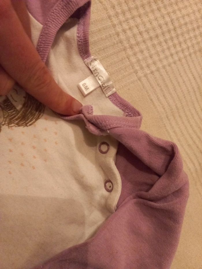 Body 6 9 mois coton mauve thème petite fille et chat - photo numéro 1