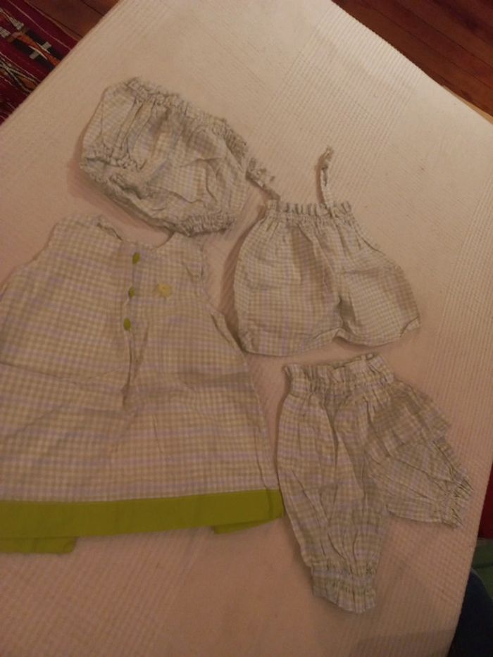 Jamais porté cadeau eu trop tard Fabriqué au Portugal Couleur lumineuse a carreaux vert pale et blanc 3 tenues possibles, top pour le change #bébéfille #ensemble #lotétéfille #ensemble #neuf #coton #bébéfille9mois #bébéfille12mois