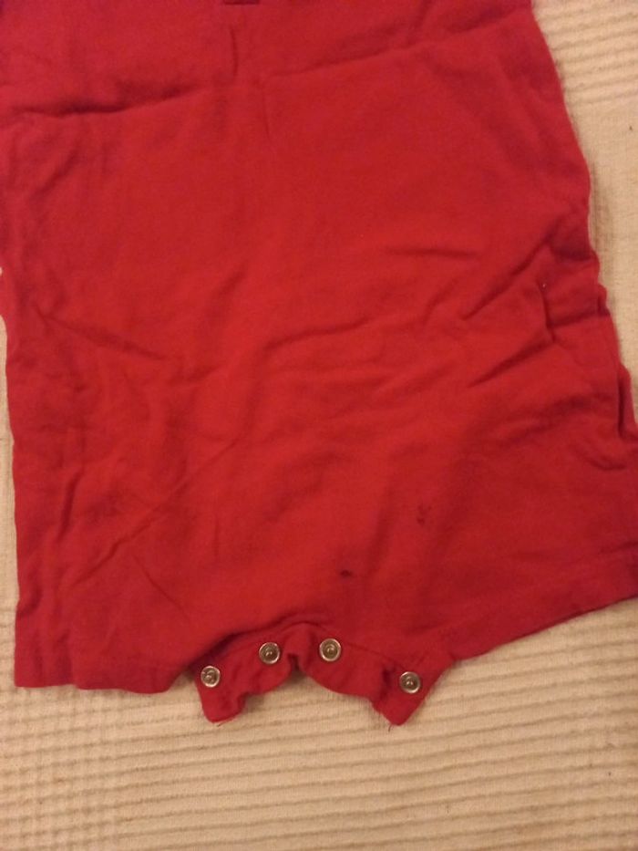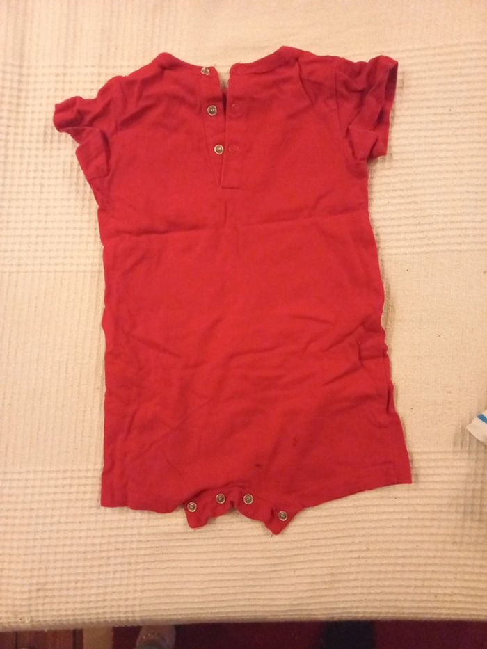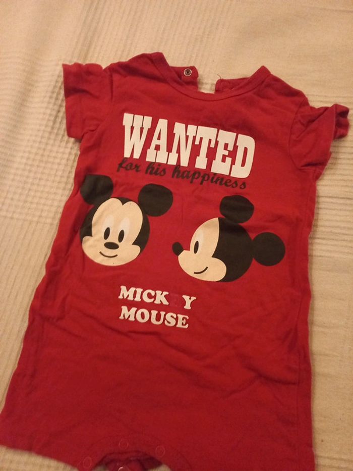 Occasion, lettre E manquante et petites taches au dos Mais bon état général 1 € au lieu de 1,50 #bebegarcon #bébéfille #combinaison #combishort #mixte #disney #bebe9mois #bebe12mois