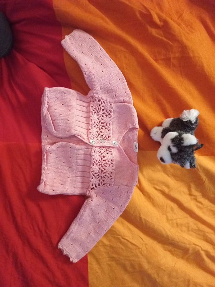 Beau Gilet 0 a 3 mois coton dentelles rose - photo numéro 1