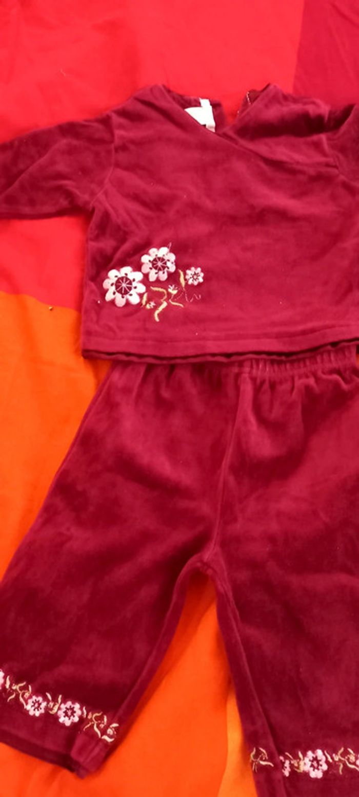 Belle ensemble bordeaux type velours 4 a 9 mois - photo numéro 1