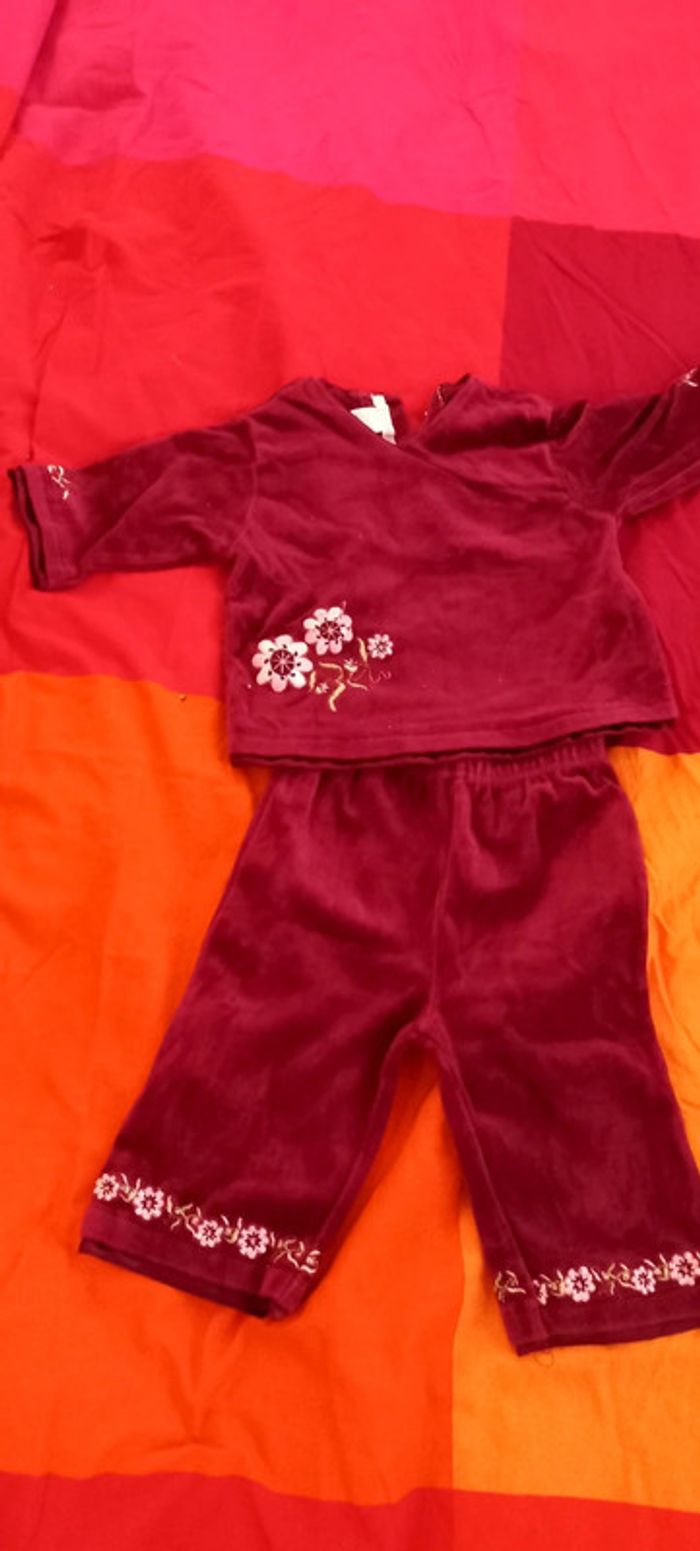 Belle ensemble bordeaux type velours 4 a 9 mois - photo numéro 3