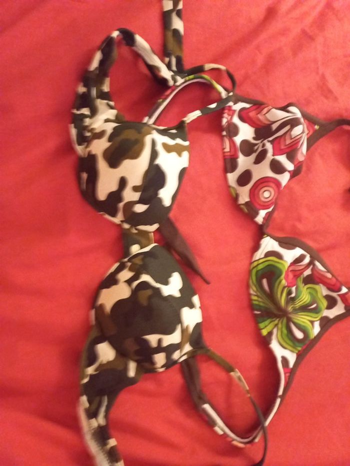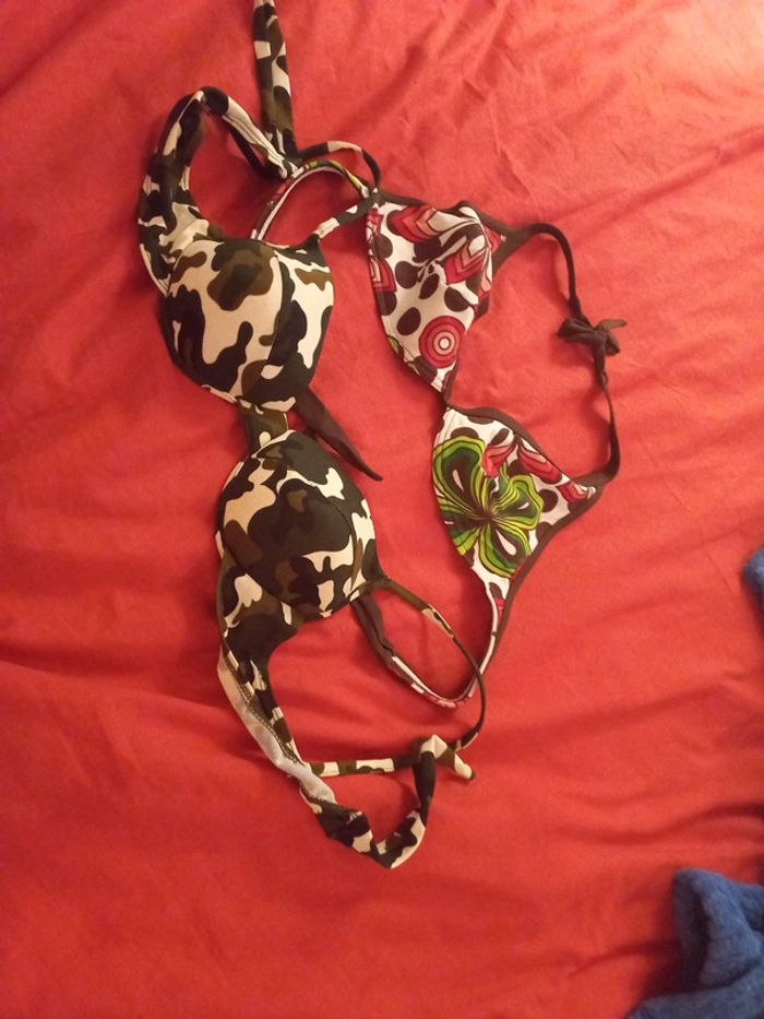 Lot 2 hauts maillots de bain 85B 1 fleuri 1 militaire - photo numéro 1