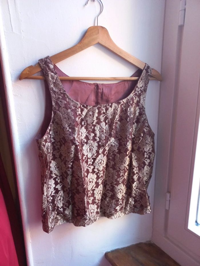Magnifique haut terra cotta doublé feuilles d'or Taille 40/42 - photo numéro 4