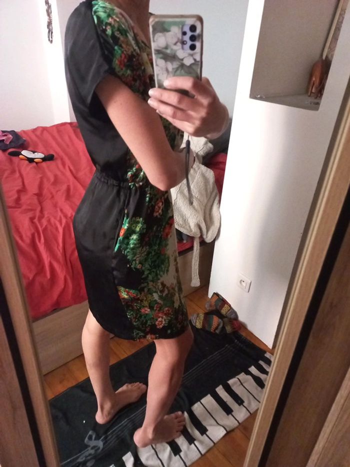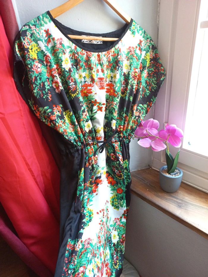 Belle robe effet satin asiatique fleurie Taille unique - photo numéro 1