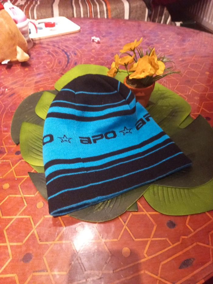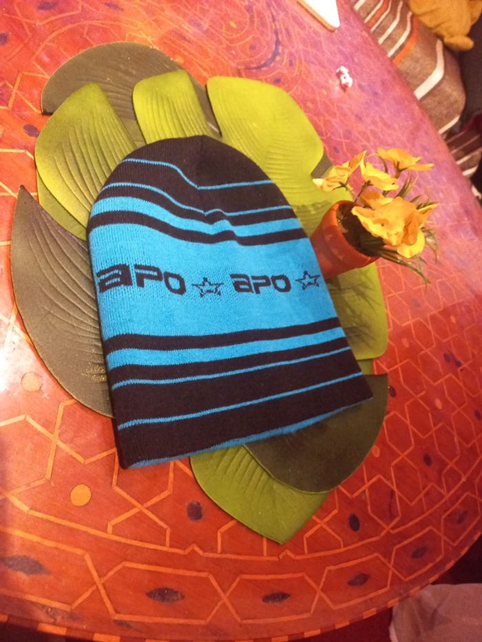 Bonnet rayé rare car ancien modèle, turquoise noir Apo snowboard mixte - photo numéro 1