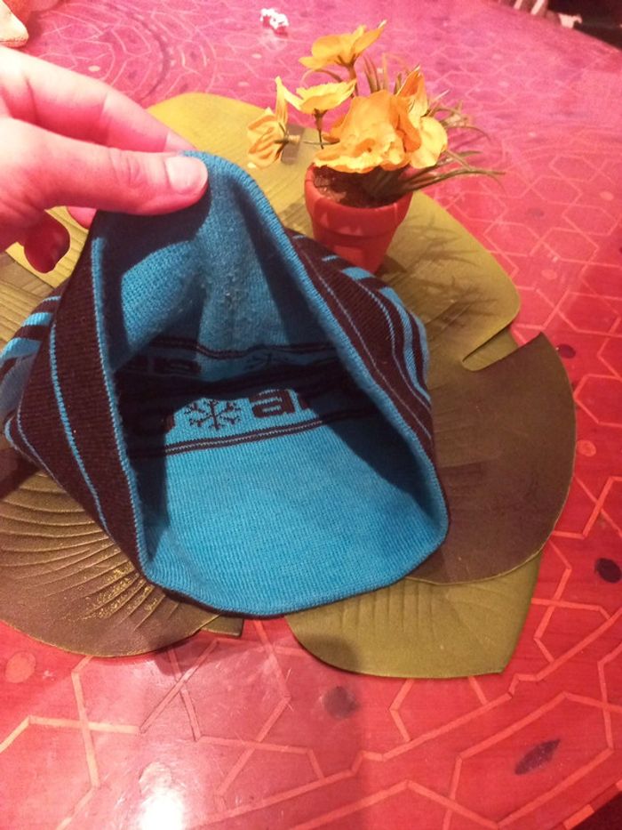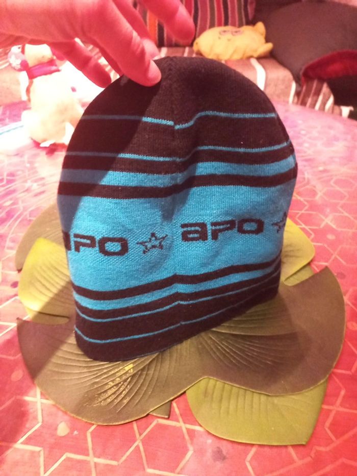 Bonnet rayé rare car ancien modèle, turquoise noir Apo snowboard mixte - photo numéro 4