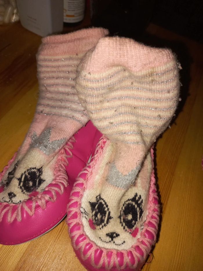 Portés mais en bon état. Petites peluches (photo) mais toujours belles, semelle en excellent état (pas de trou ni usées), juste quelques marques de vecu De environ taille 18 a 20 (souples) Génial pour ma fille car dur à retirer et produit plus en vente neuf #bébéfille #bébéfille9mois #bébéfille12mois #bébéfille6mois #chaussures #chaussonsbebe #chaussettes #taille19 #taille20