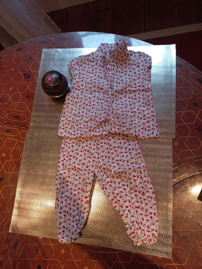 1 chemisier cerises très joli, portable aussi indépendamment avec jupe ou short rouge Un pantalon cerise taille élastique, portable aussi avec d'autres articles Très bel ensemble léger et pratique Sorties ou quotidien Coton, des 9 mois à 12 mois #bébéfille12mois #bébéfille9mois #bébéfille