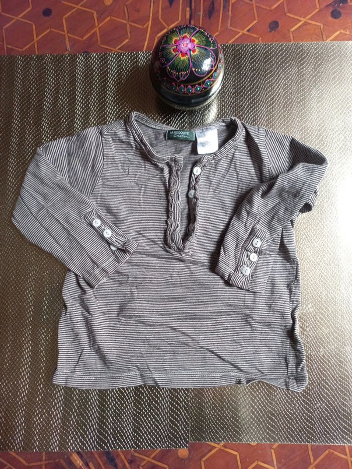 Jolies finitions type sous pull ou pull d'été Rayé gris blanc pour fille avec boutons aux manches et au col La redoute création, jusqu'à 81cm #bébéfille #bébéfille9mois #bébéfille #bébéfille12mois