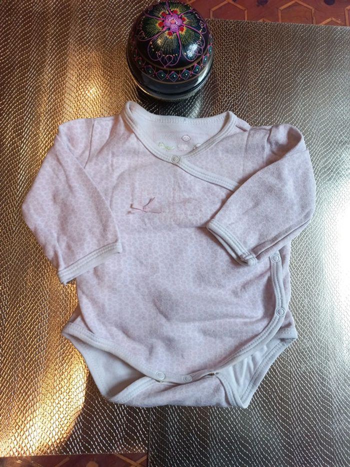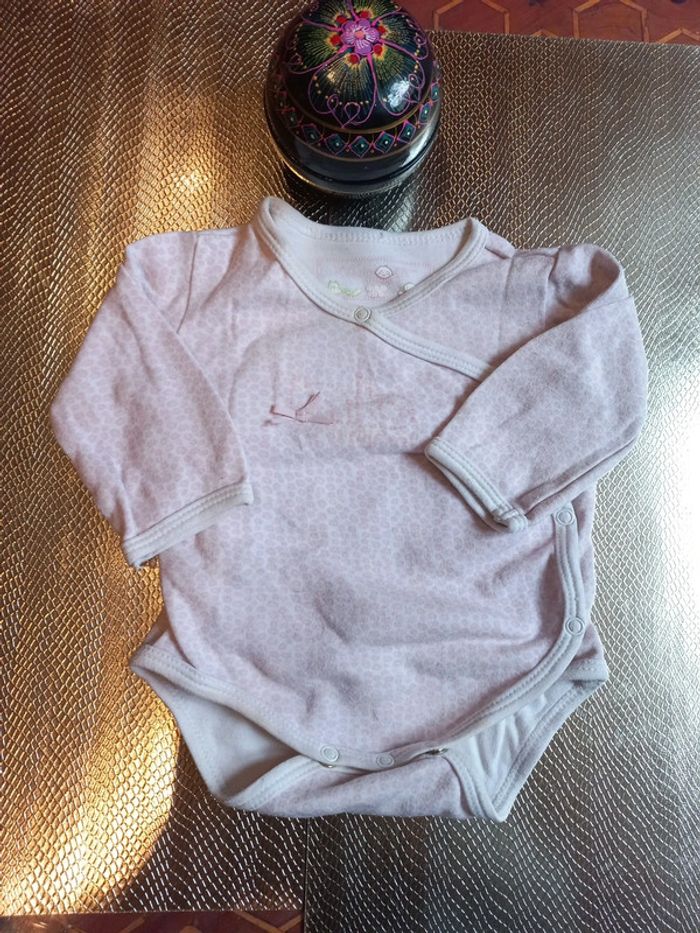 Bon état même si a vécu Coton jolie et pratique avec son ouverture devant pour ne pas déranger bébé Blanc et rose Jusqu'à 2 mois maximum 66cm #bébéfille #nouveauneefille #bébéfille1mois #bébéfille0mois #bébéfille3mois