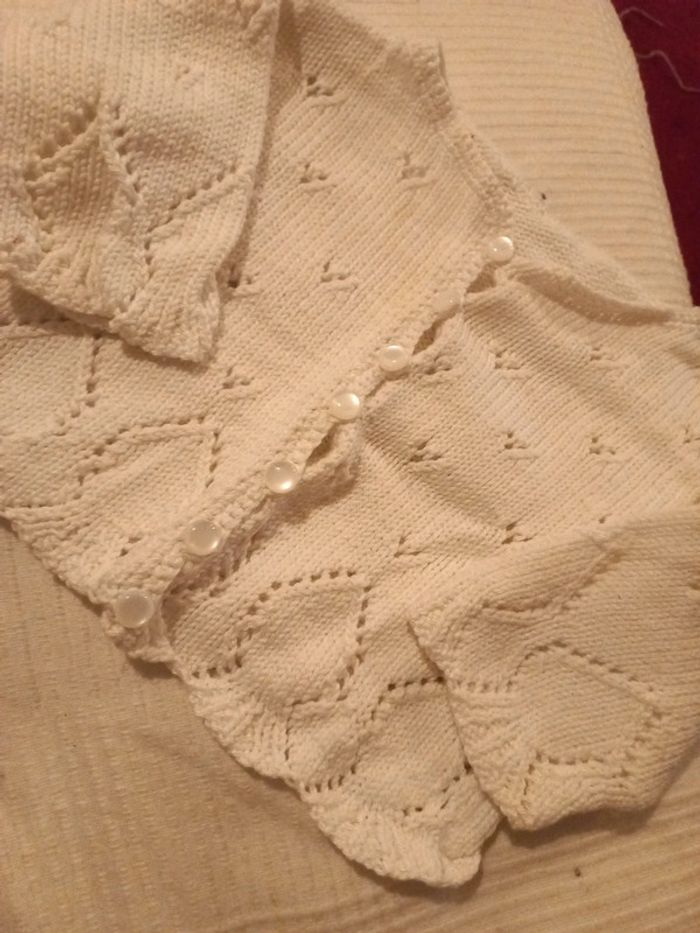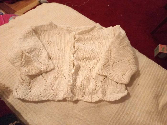 Gilet blanc avec dessins, très beaux boutons 3D transparents Parfait des 6 mois à 9 mois, manches longues à mi longues selon l'âge Élégant #bebefille6mois #bébéfille #bebefille9mois