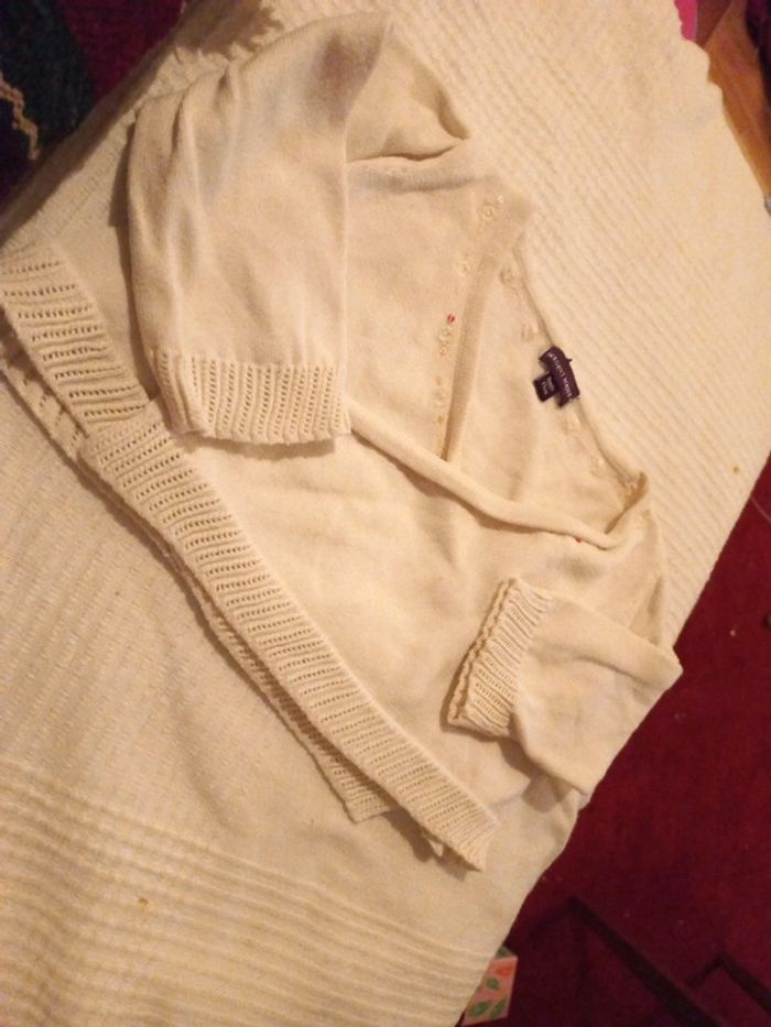 Bon état, couleur crème, très joli et possible pour tenue de soirée sur robes Ornements, bouton et bordures raffinés Fermeture par petit bouton interne et pression externe Des 6 mois #bebefille6mois #bébéfille #bebefille9mois