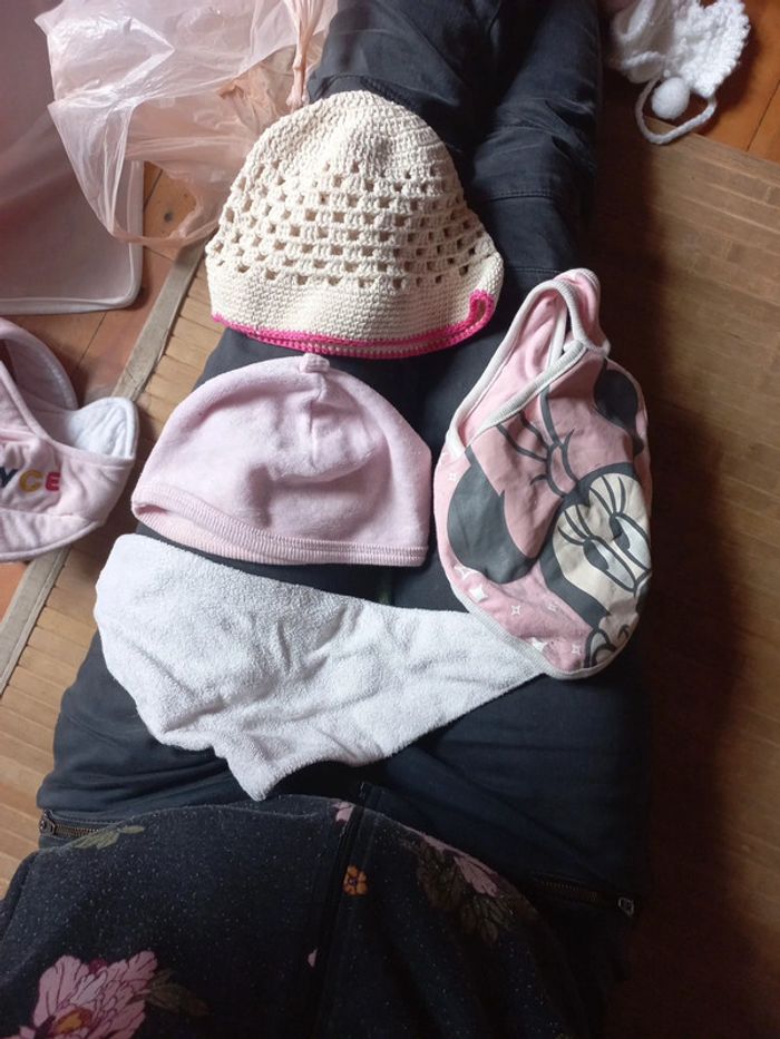 Lot 4 articles naissance bébé fille bonnets Disney bavoirs - photo numéro 4