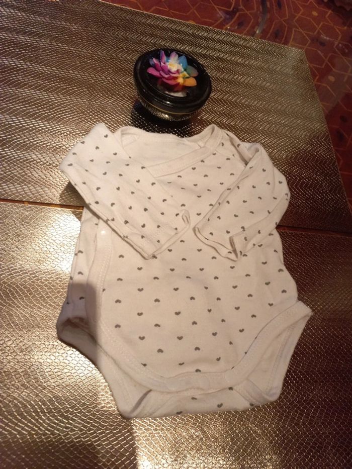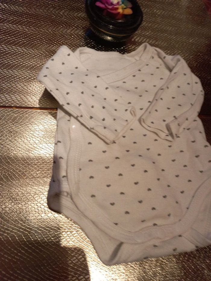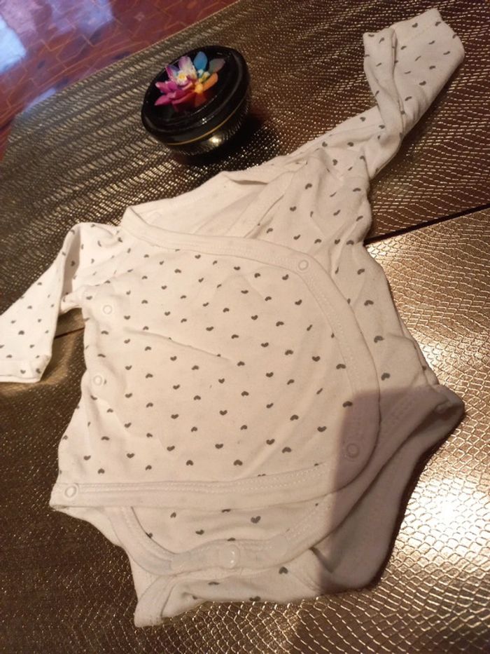 Très bon état, coton, blanc a cœurs gris Idéal nouveaux nés car ouverture devant 😊 Naissance à 1 mois mixte #bébéfille #nouveauneefille #bébéfille1mois #bébéfille0mois #naissance #premature