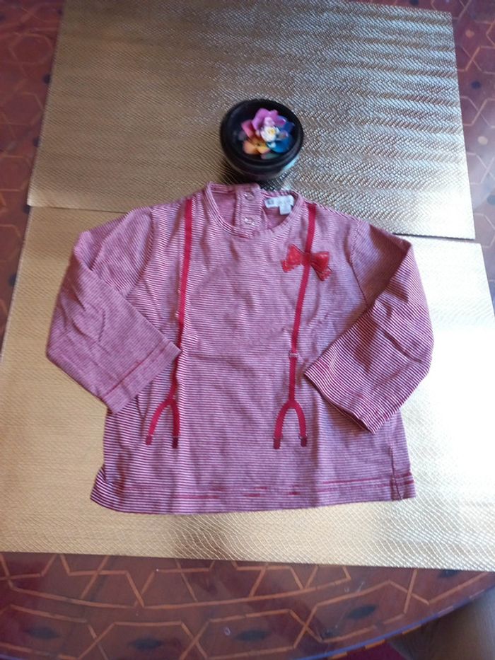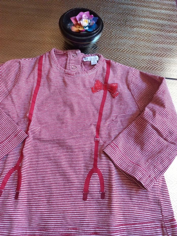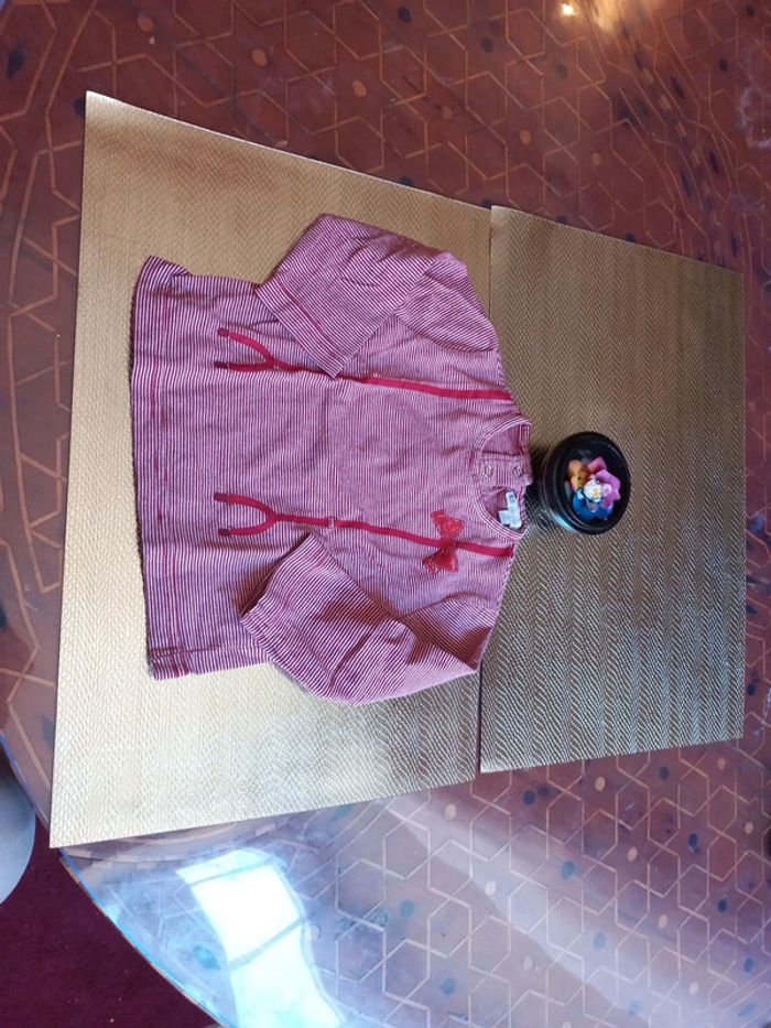 Joli, sympa rayé blanc bordeaux, 100 % Coton Imitation de bretelles de salopette sur le devant U Collection, taille grand #bebefille6mois #bébéfille #bebefille9mois #bébéfille12mois