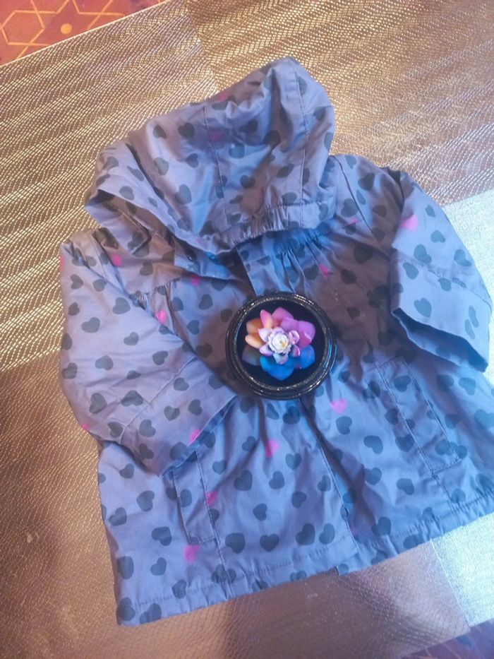 6 mois De 3 a 6 mois, violet à cœurs noirs et roses Capuche retractable #bébéfille #bébéfille3mois #bébéfille6mois