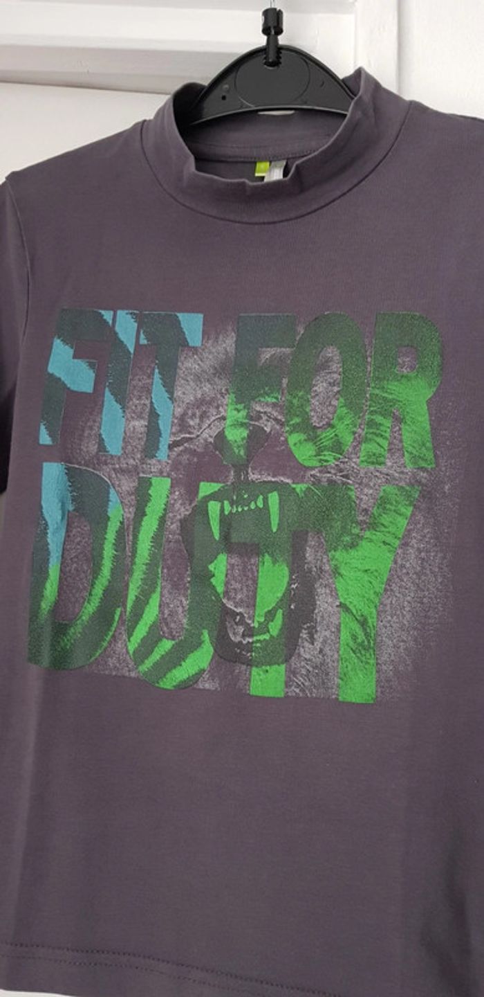 Tee-shirt / sous pull gris, flocage tigre impeccable - T. 8 ans - COMME NEUF.