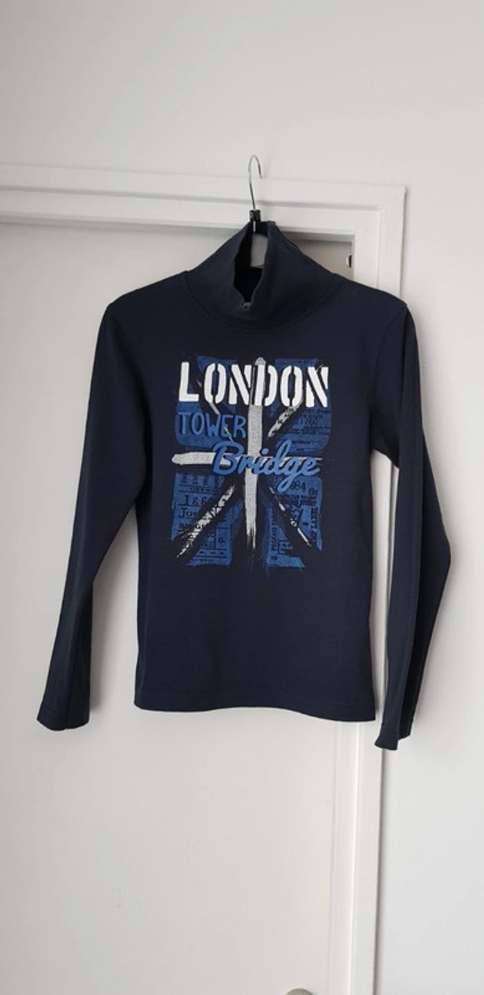 Tee-shirt manches longues / Sous-pull bleu marine avec impression 🇬🇧 impeccable 🇬🇧 - T. 8 ans - TRÈS BON ÉTAT COMME NEUF.