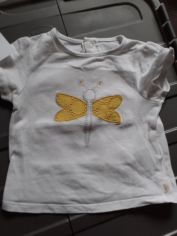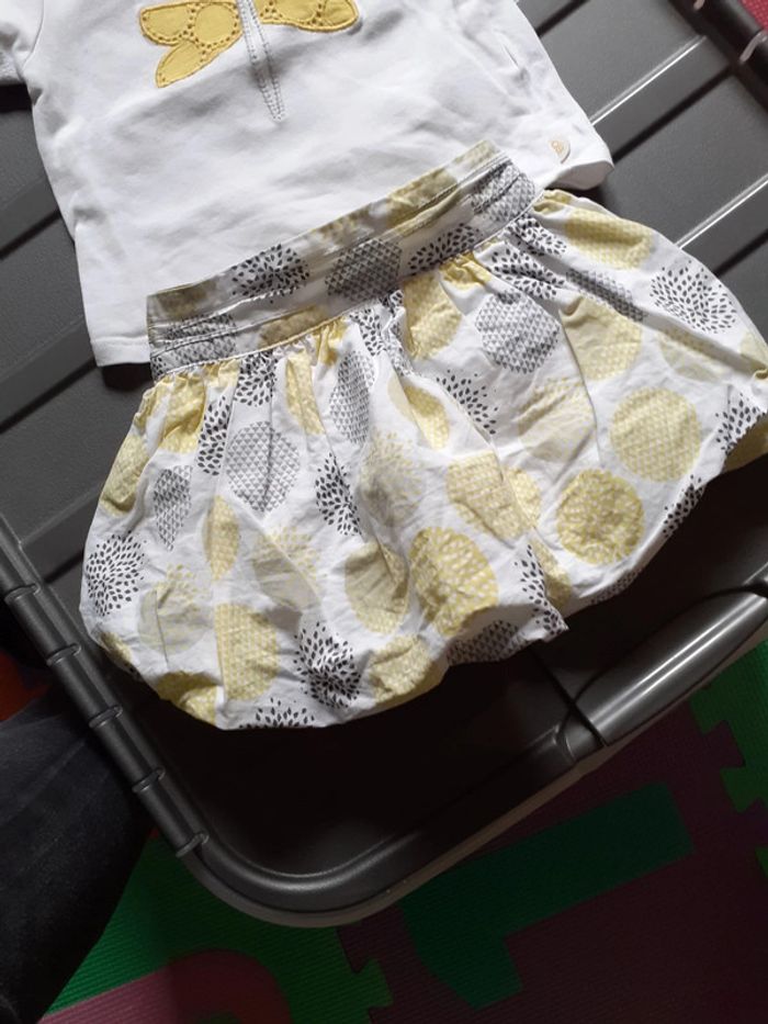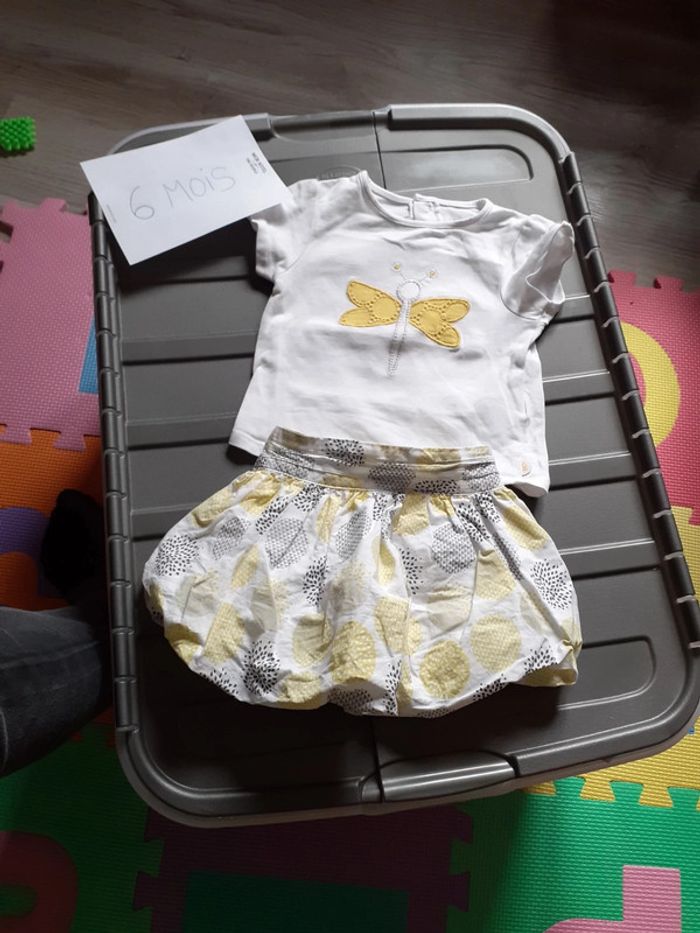 Ensemble fille de marque obaibi taille 6 mois Lot comprenant un tee-shirt manches courtes blanc avec libellule et une jupe boule Très jolie