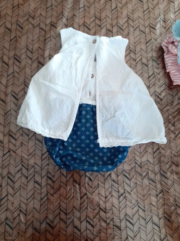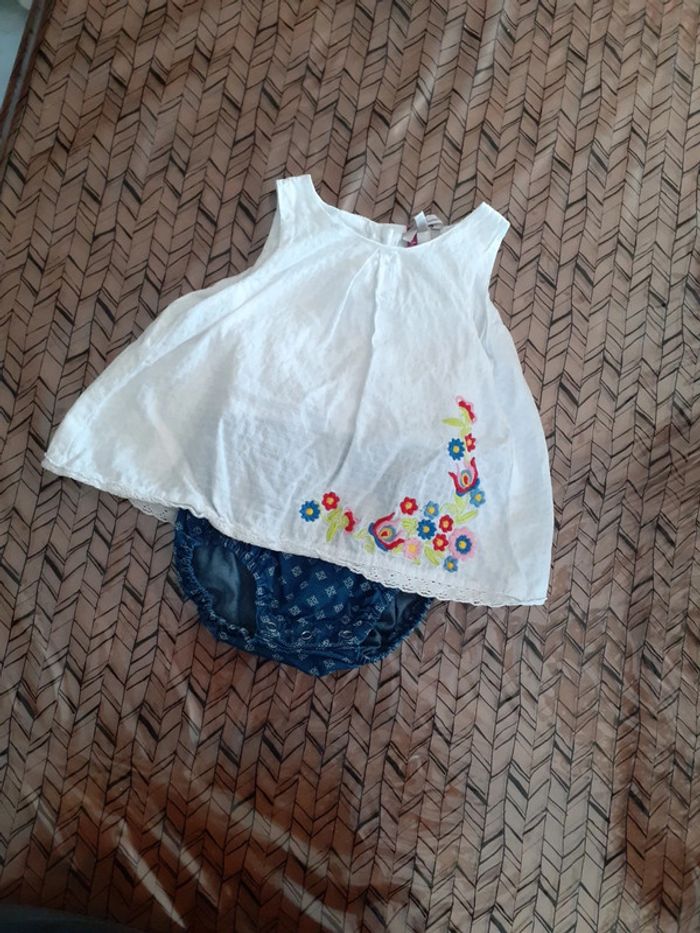 Marque orchestra taille 6 mois Blouse blanche avec motif, cache couche intégré marine à motif Pensez aux lots