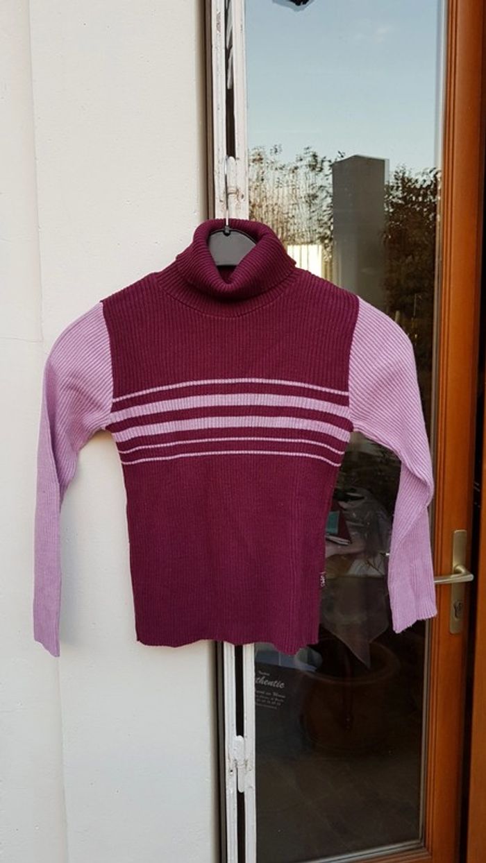 Pull col roulé rose et bordeaux - T. 6/8 ans - TRÈS BON ÉTAT