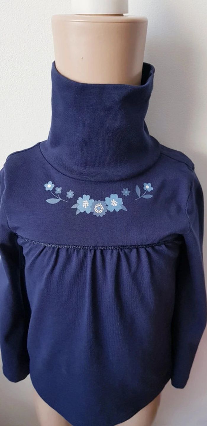 Sous pull bleu marine, flocage fleur - T. 4 ans - NEUF.