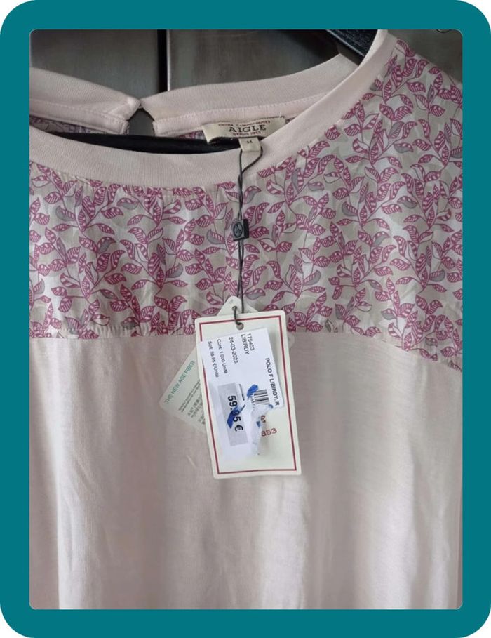 Tee-shirt Aigle taille M neuf rose et beige - photo numéro 4