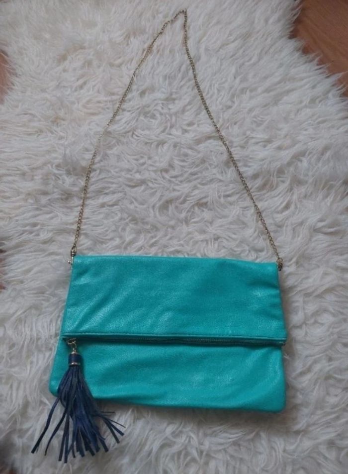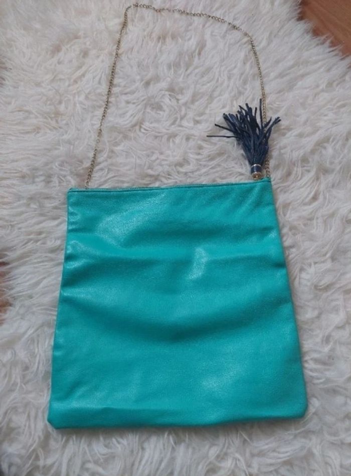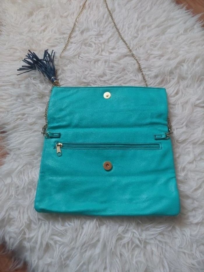 Pochette/clutch/sac bleue avec chainette dorée et pompon H&M TBE - photo numéro 4