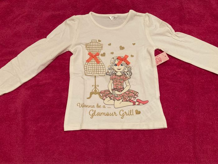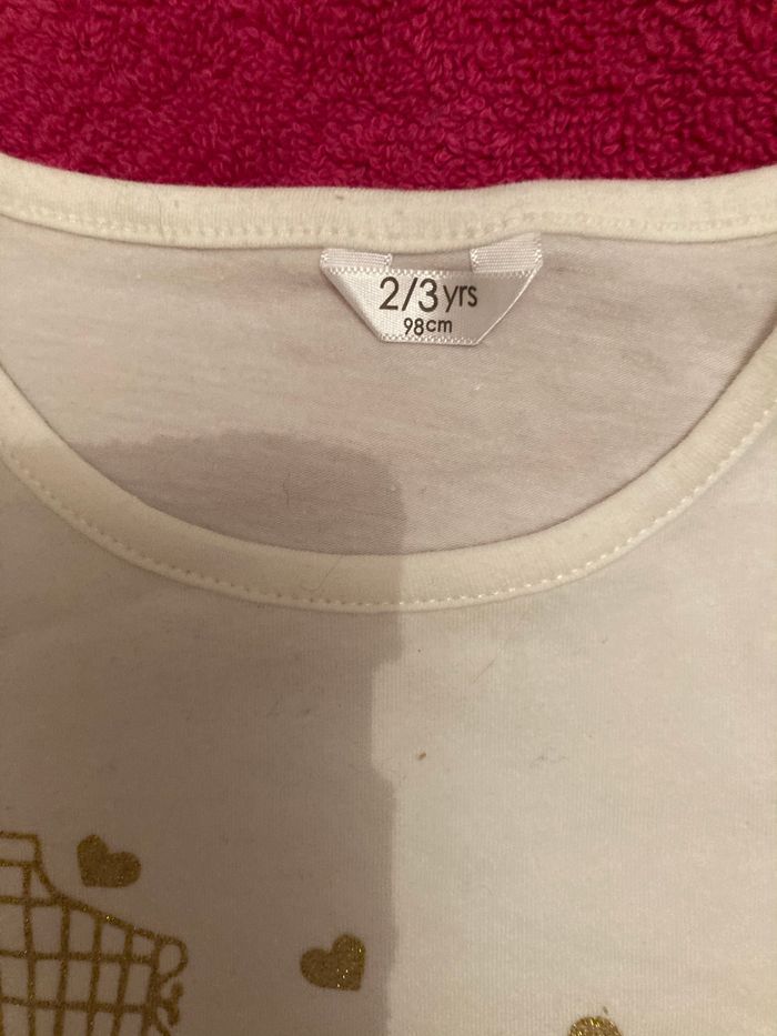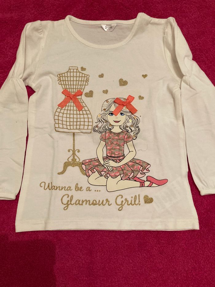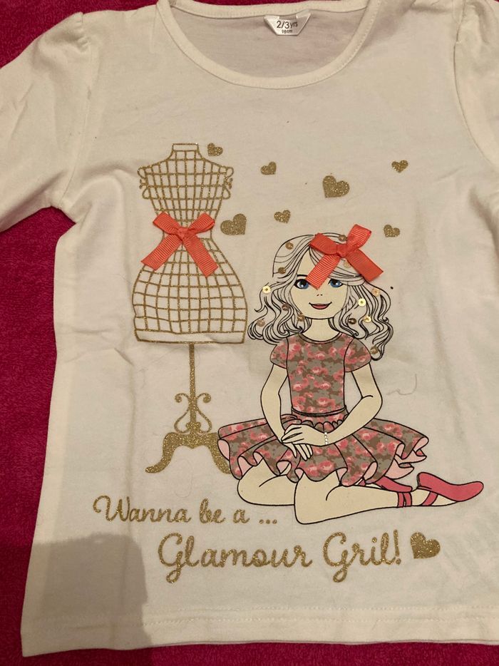 Joli motif très « fille «  et paillettes pour ce tee-shirt manches longues Taille 2/3 ans Neuf et étiqueté Envoi rapide et soigné