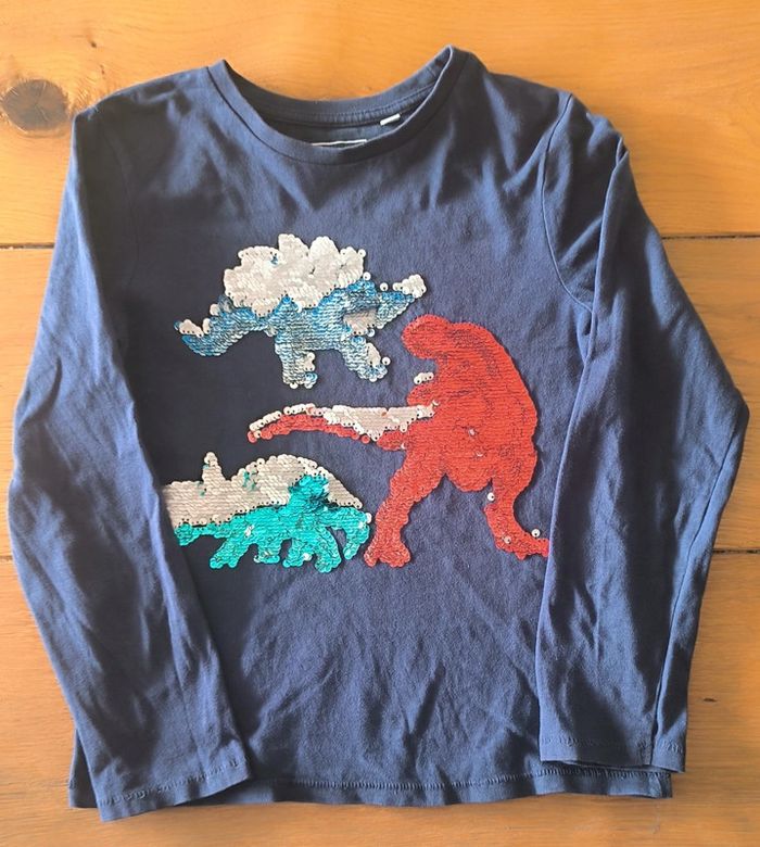 T-shirt à manches longues à motifs dinosaures à sequins changeants C&A en très bon état taille 8 ans #hbigarcon8ans