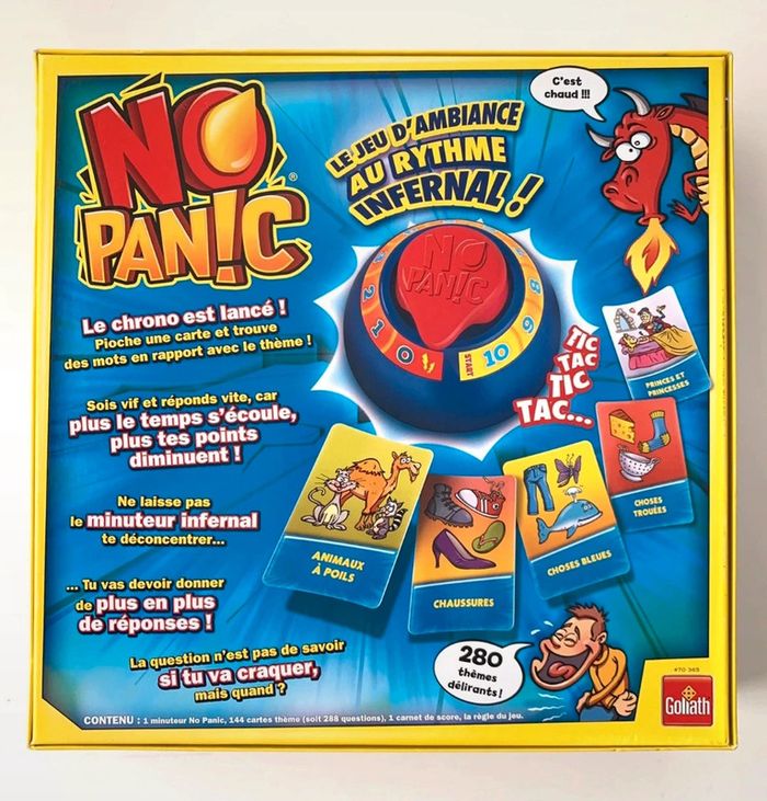 NO PANIC : Le jeu d’ambiance familial par excellence ! Un jeu pour toute la famille avec 2 niveaux de difficulté sur les cartes pour s’adapter à l’âge des joueurs. Avec ce jeu de réflexion, votre enfant pourra développer son expression, le partage, la réflexion, la logique et l'interaction.