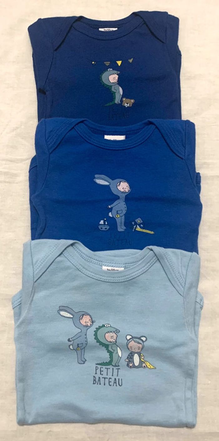 Lot de 3 bodys à manches longues Petit bateau en très bon état taille 3 mois (60 cm) #hbigarcon3mois